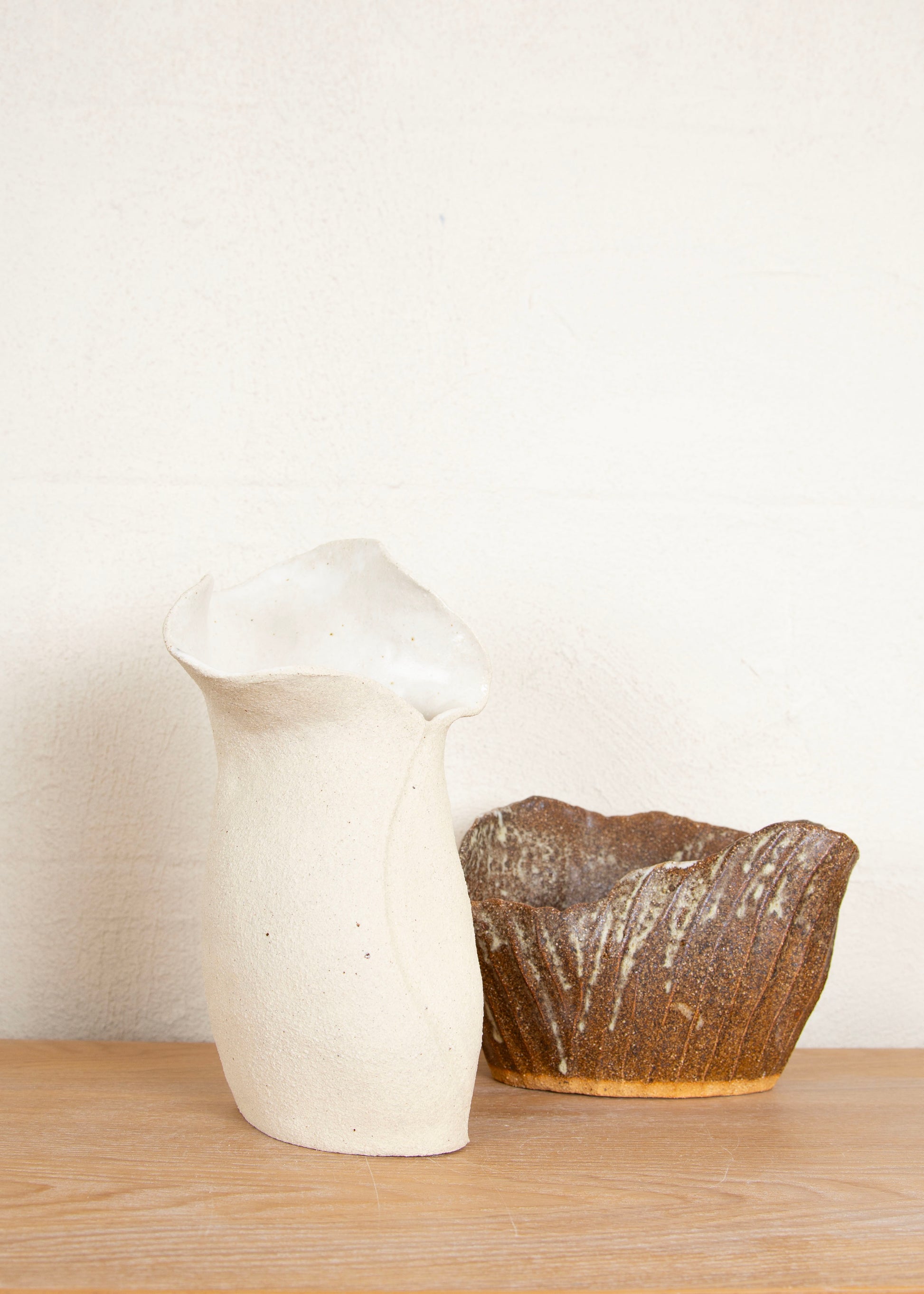 The raw sandblasted finish, negative accents and curvy forms are the foundation of the Forme collection. Sculptural and functional, with or without florals - each Forme piece embodies the notion or minimalistic beauty. Each Forme piece is hand crafted out of white stoneware. Each piece is unique and no two Forme pieces are the same. The surface of the clay has been buffed to reveal the texture enhancing the shape and form.DIMENSIONS